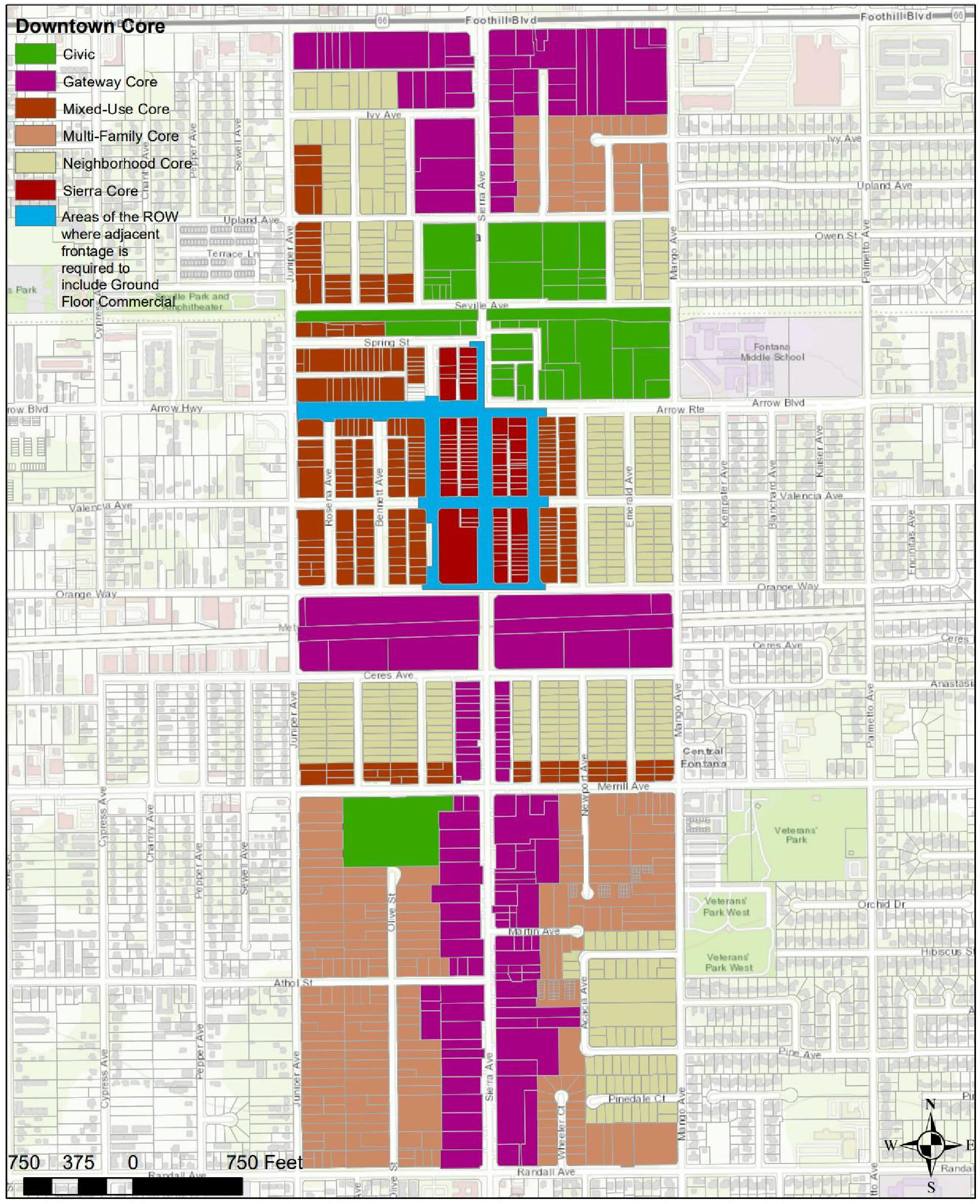 Additional public open spaces can be integrated into this section as they are approved by the City of Fontana.
