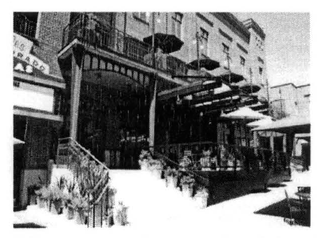 When parking is not attached to or part of the building, structures that enclose parking shall incorporate simple jogs so that long plain roofs and long wall elevations can be avoided.