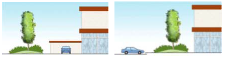 Where design permits, parking areas located behind buildings are encouraged. Driveway access to rear parking and loading areas and clear signage identifying rear parking availability shall be incorporated into the overall design.