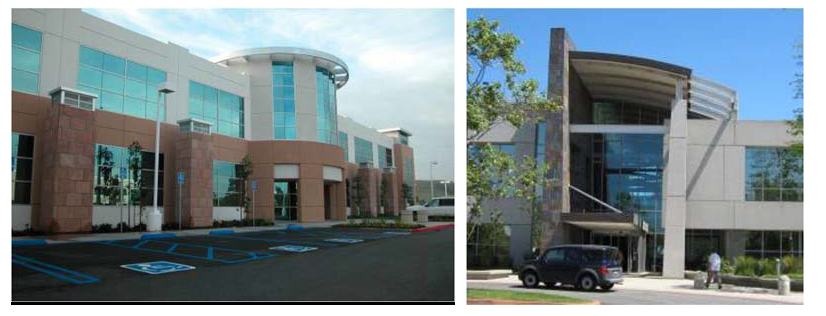 In order to establish and reinforce an industrial district identity, new industrial projects are encouraged to develop a central design theme around which the following architectural elements can be designed: building form, signage, light fixtures, walls and fences, landscaping and other site furnishings, as well as areas of public gathering such as plazas and courtyards.
