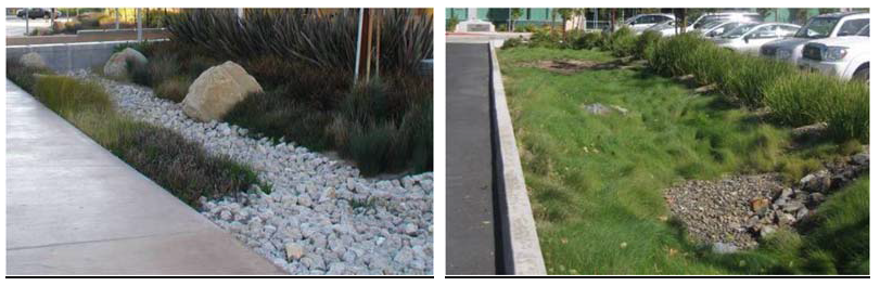 Run-off retention and on-site water filtration/stormwater treatment features and bioswales should be a part of the overall landscape design and can also serve as buffering methods for adjacent businesses.