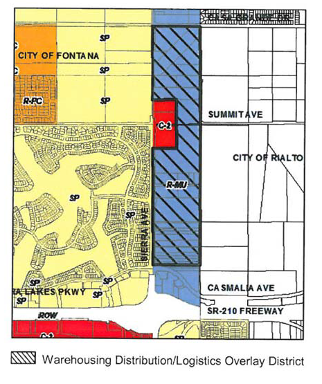 Warehousing distribution/logistics overlay district (Sierra Avenue). A district that provides for the limited, well planned and orderly development of warehousing distribution/logistics uses on properties within the light industrial (M-1) zone as provided for in Section 30-532 et seq. Unlike other overlay districts in this division, this overlay identifies a geographic area where such uses may be allowed subject to a separate zone change request to establish the overlay on one or more parcels eligible to receive it.