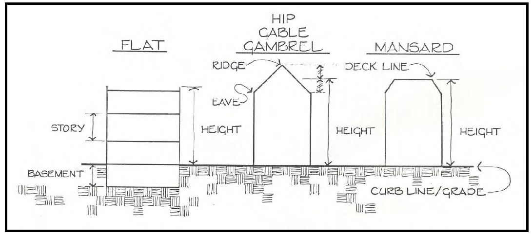 Roof Line. The highest point of a flat roof and mansard roof and the lowest point of a pitched roof, excluding any cupolas, chimneys or other minor projections.