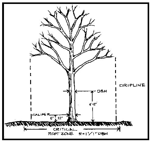 Tree, Large (Canopy). A tree, either single or multi-stemmed (i.e., in clump form) which has a height of at least eight (8) feet and is of a species which, at maturity, can be expected to reach a height of more than thirty-five (35) feet under normal growing conditions in the local climate. If the tree is single-stemmed, it shall have a caliper of at least two and a half (2 ½) inches at the time of planting measured six (6) inches up from the highest root of the tree. Also known as a canopy tree.