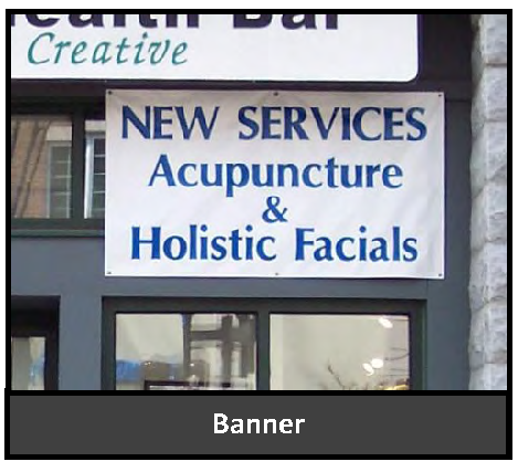 Signs in this category are typically referred to as "banners" that are typically associated with (but not limited to) the announcement of community, sporting and similar special events. For examples of Type 2 Temporary Freestanding Signs, see Figure 6.3.