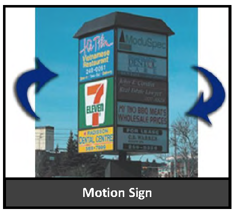 Motion signs, rotating signs, other than on-premise rotating identification names which contain a logo and/or business name on it.