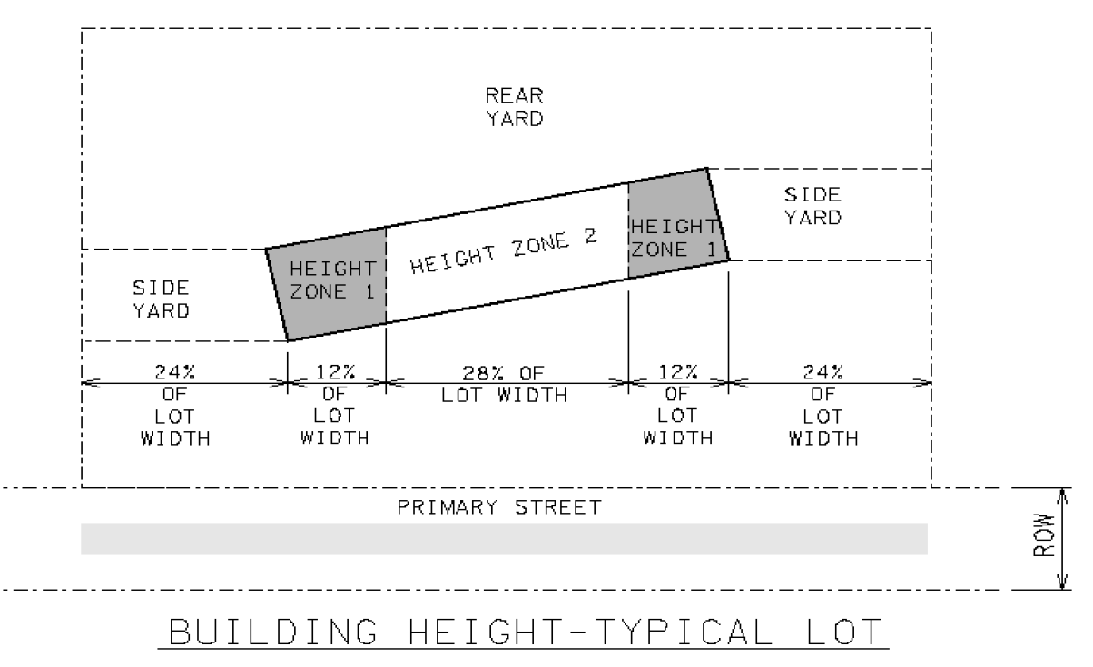 Building Height: The vertical height measured from the existing grade plane to the average height of the highest roof surface of the building. For purposes of this definition, "grade plane" is the average of the elevations of the existing grade at each end of the front of the Building.