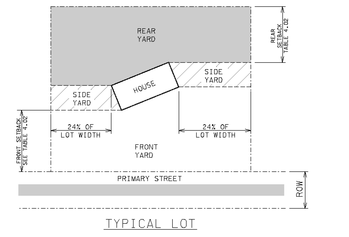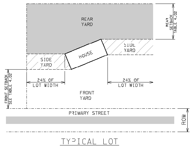 The minimum lot width, front yard setback, rear yard setback, and side yard setback shall be determined by approval of the site Concept Plan.
