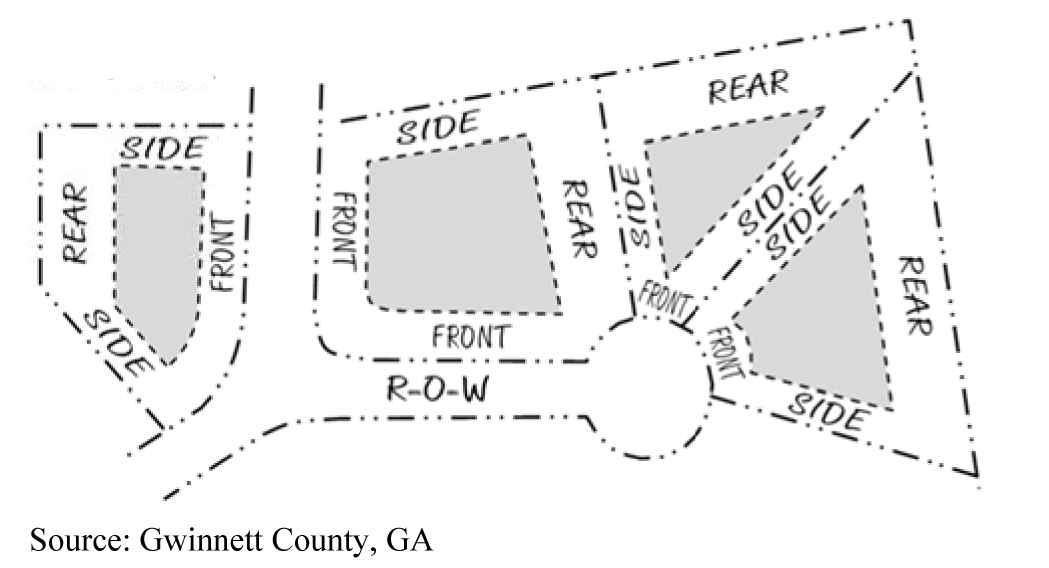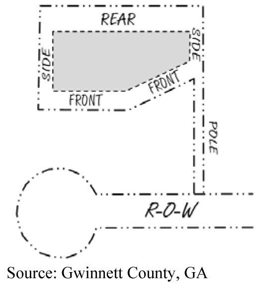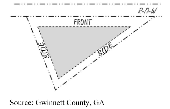 Triangular-shaped lots. A lot where two opposing side lot lines intersect at the rear of a lot shall be determined to have no rear lot line or corresponding setback requirement.