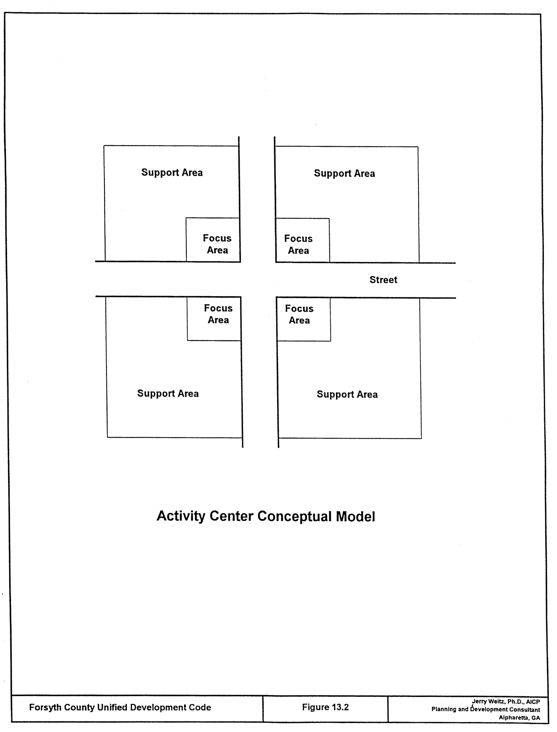 Building design and landscaping in activity centers should be compatible and harmonious with adjacent neighborhoods. In general, residential densities and non-residential intensities should be highest within activity centers, transitioning to progressively lower densities moving outwards from the focus area to the outer edge of the activity center.