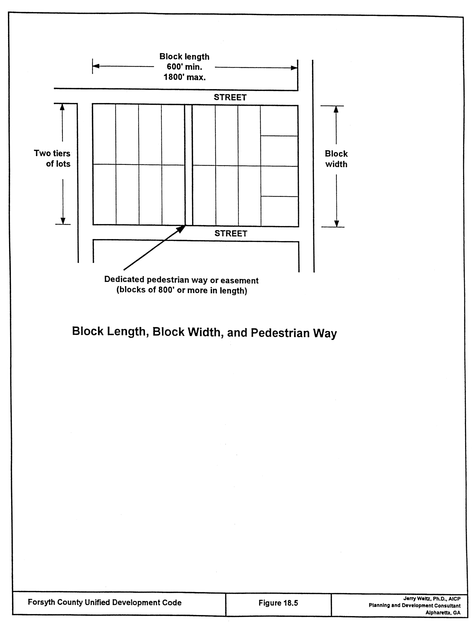 Block length. Intersecting streets shall be provided at such intervals so as to provide adequate cross traffic. Blocks in residential subdivisions should not exceed 1,800 feet nor be less than 600 feet in length, except where topography or other conditions justify a departure from these standards. In blocks longer than 800 feet, pedestrian ways and/or easements through the block may be required by the planning commission near the center of blocks.