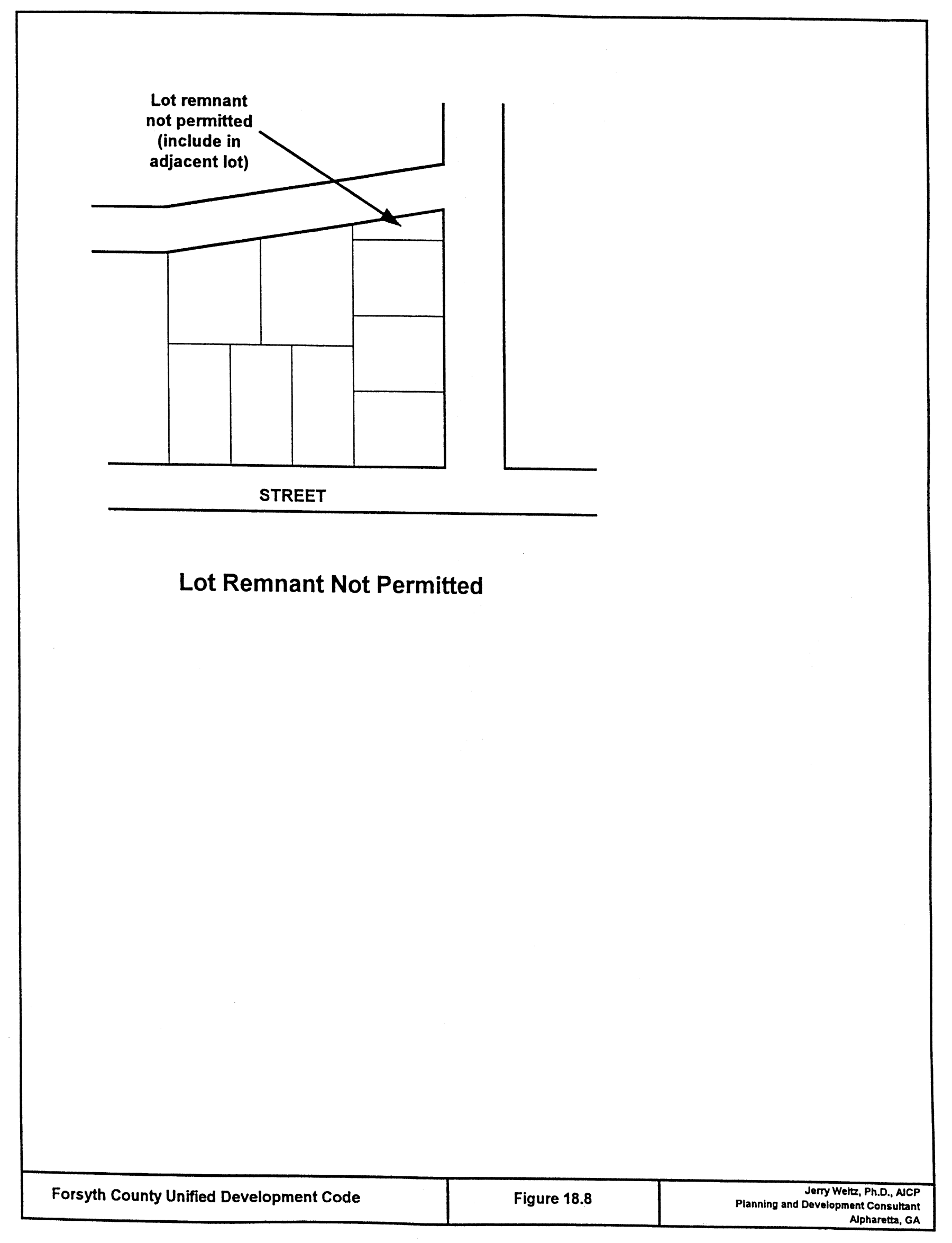 All remnants of lots below minimum size left over after subdividing of a larger tract must be added to adjacent lots, rather than allowed to remain as unusable parcels. The director of planning and community development may permit a lot remnant for a specific purpose such as a detention pond, provided that access and design is appropriate and the lot remnant is restricted to specific non-building use.