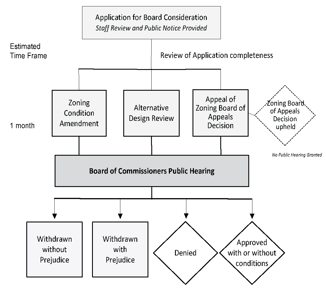 FIGURE 8.3. ALTERNATIVE DESIGN REVIEW, APPEAL OF ZONING BOARD OF APPEALS DECISION AND ZONING CONDITION AMENDMENT PROCESS