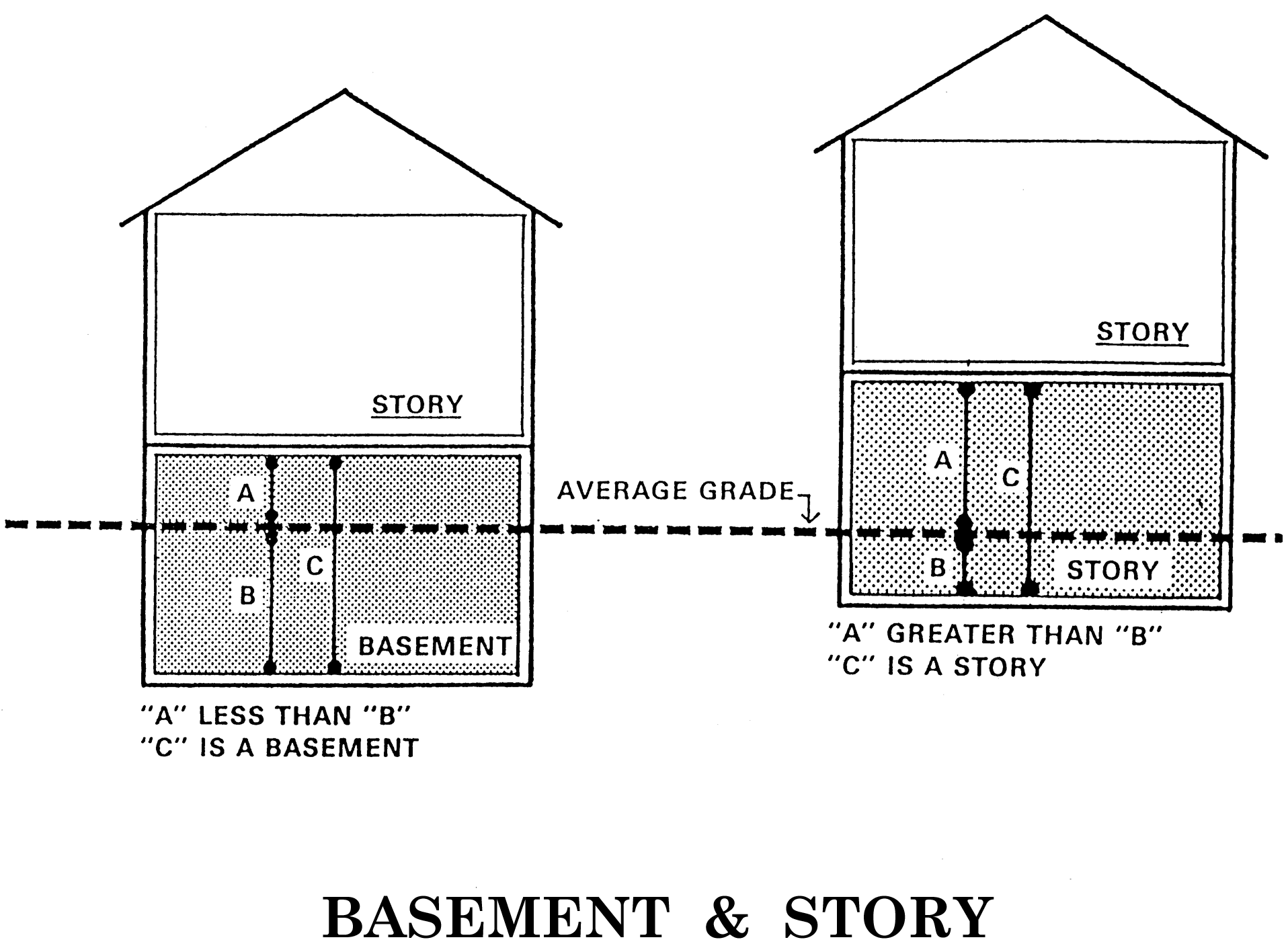 Basement means that portion of a building which is partly or wholly below grade but so located that the vertical distance from the average grade to the floor is greater than the vertical distance from the average grade to the ceiling. A basement shall not be counted as a story.