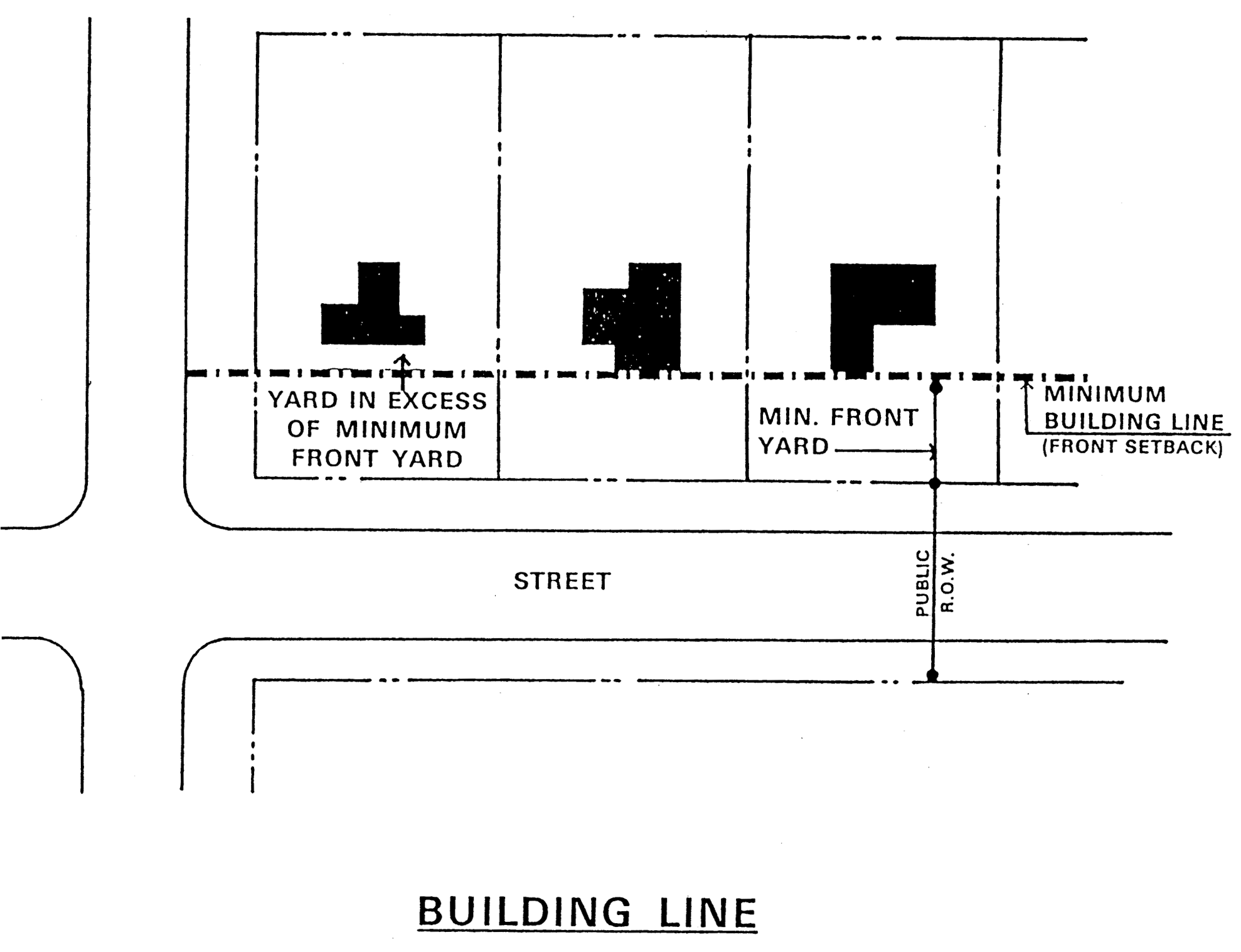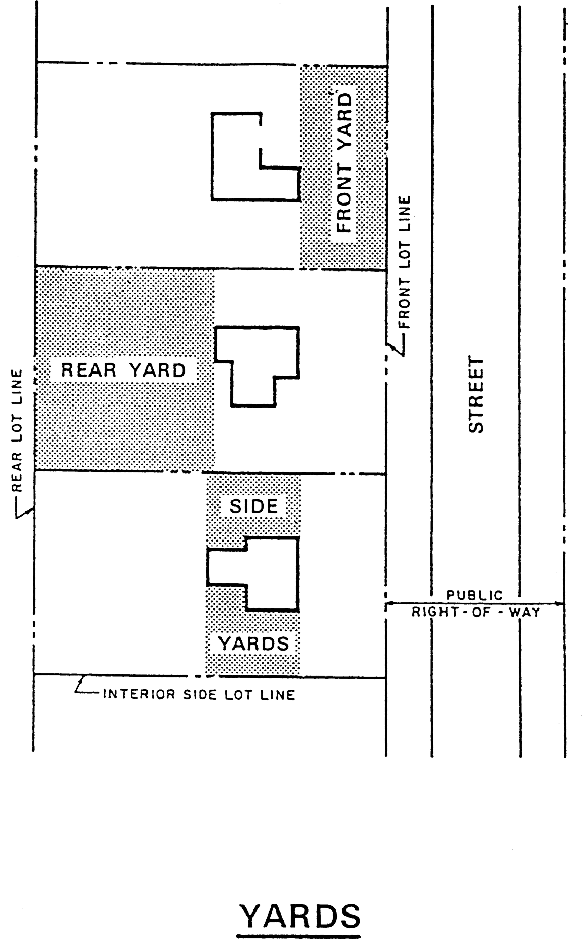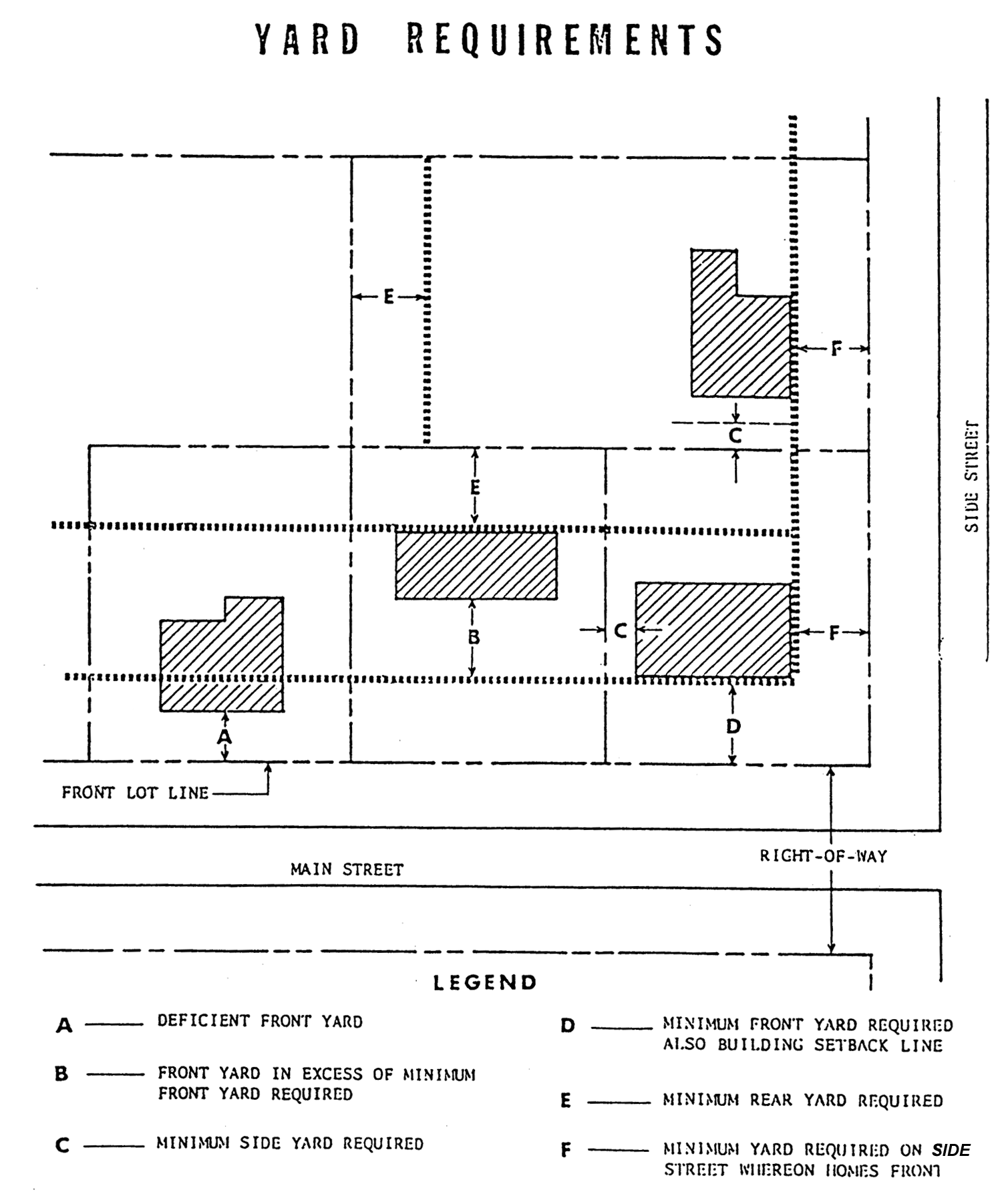 Required yard: That portion of a front, side, or rear yard lying between the front, side or rear lot line and the corresponding front, side or rear minimum setback line.