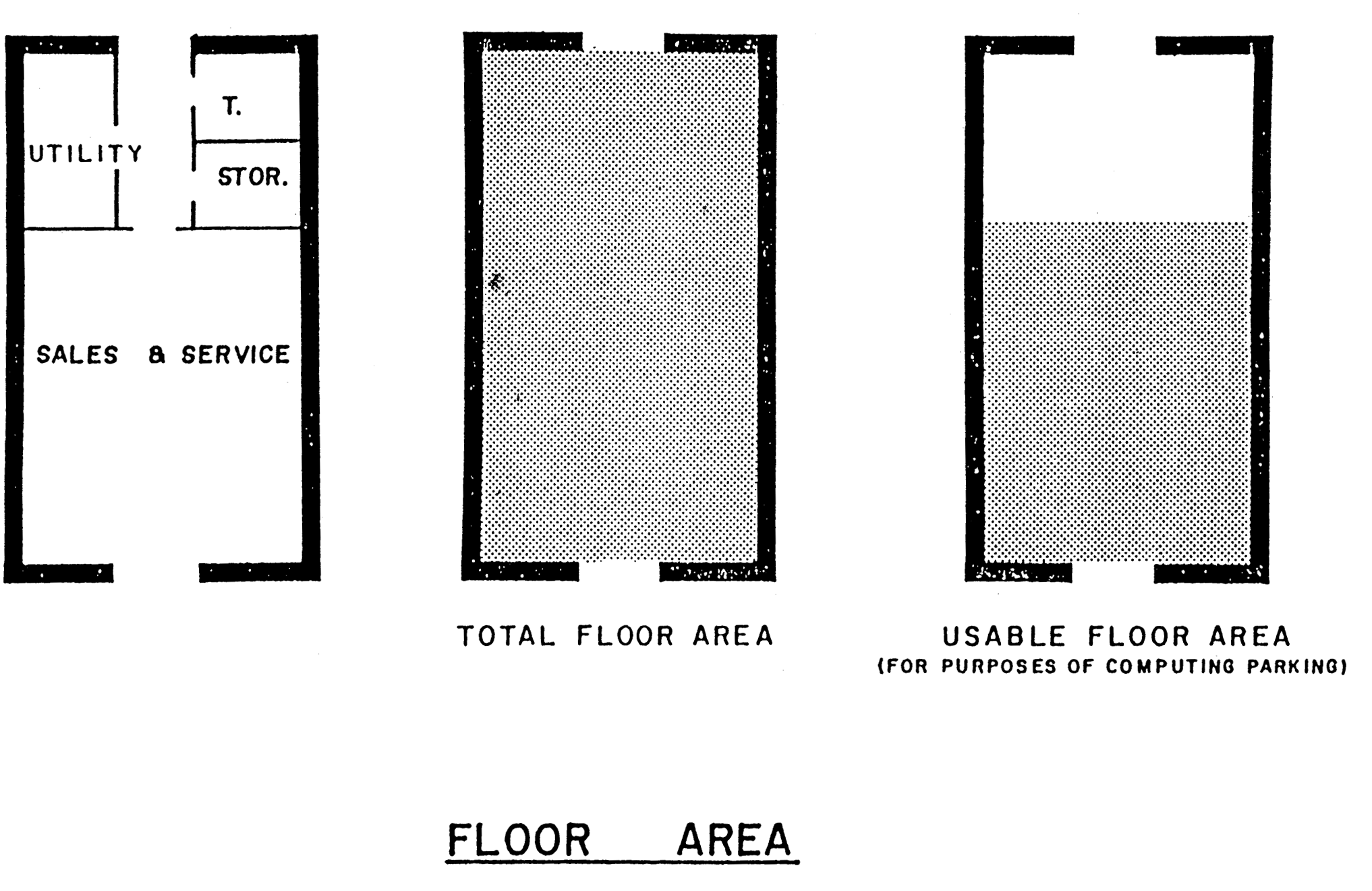 Usable floor area (for the purpose of computing parking) means that area used for or intended to be used for the sale of merchandise or services or for use to serve patrons, clients, or customers. Such floor area which is used or intended to be used principally for the storage of merchandise, or for utilities shall be excluded from this computation of "usable floor area." Measurement of floor area shall be the sum of the gross horizontal areas of the several floors of the building measured from the interior faces of the exterior walls.