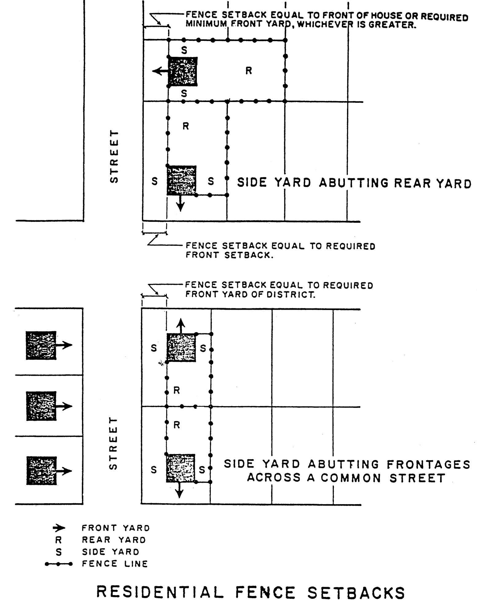 No fence shall be located in the required front yard or yard adjacent to the street of the lots or parcels in question more than 42 inches in height.