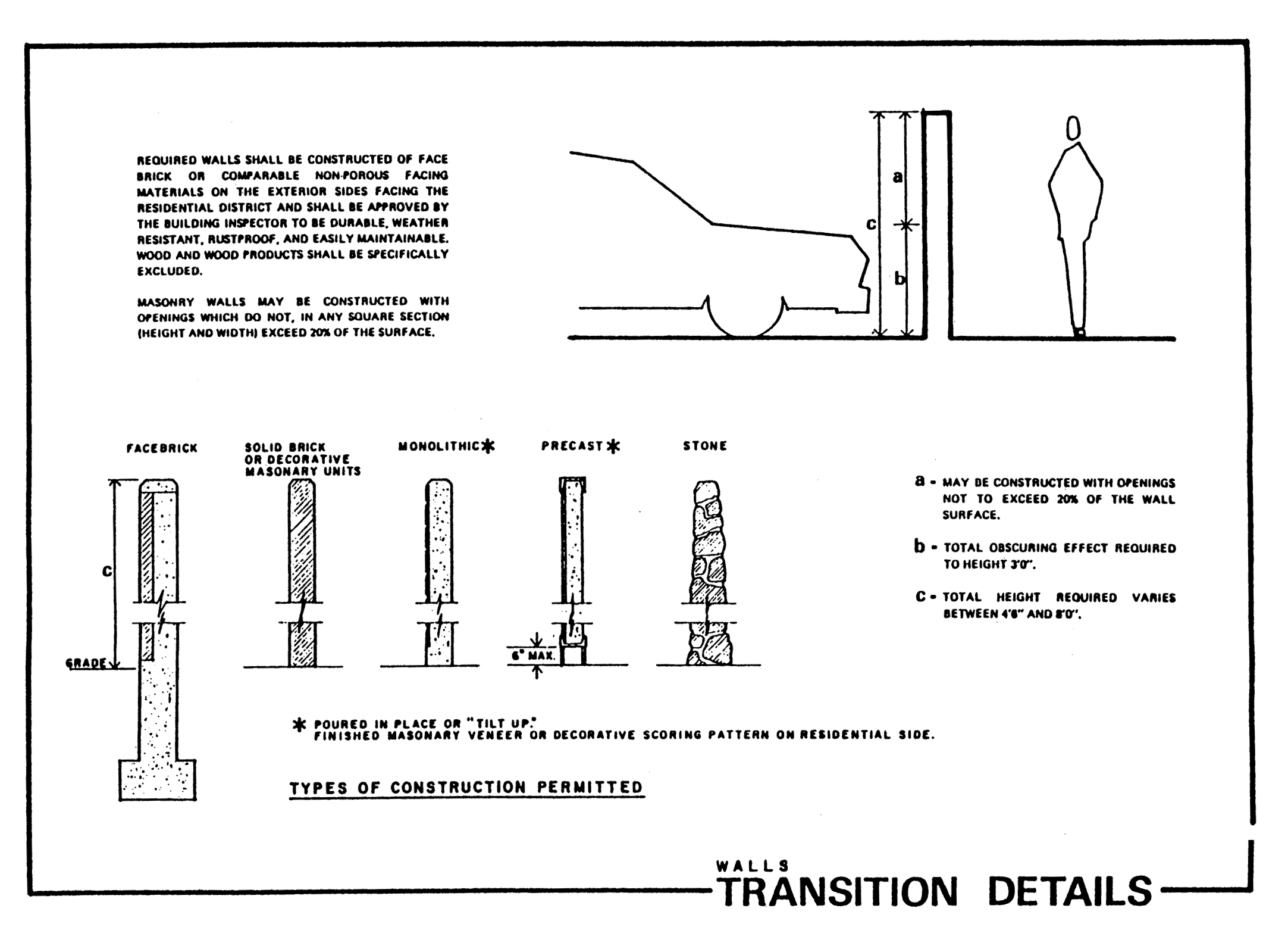 O-1, C-1, and C-2 districts. Six-foot high masonry wall.