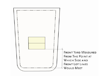 All front yard and side yard (street) setbacks shall be measured from the edge of the right-of-way.