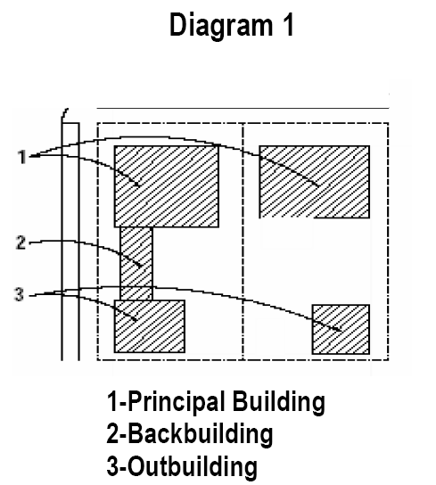 Backbuilding means a single story structure connecting a principal building to an outbuilding. See Diagram 1.