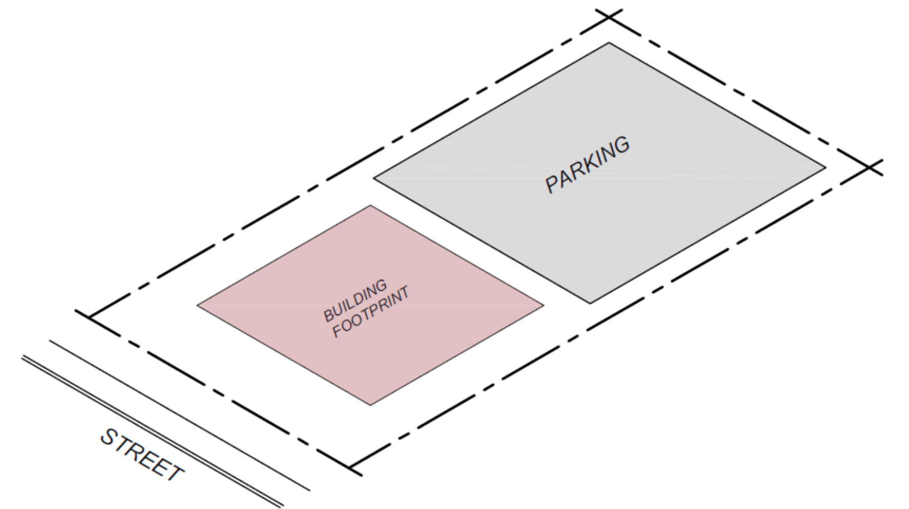 The design of surface parking lots such as parking space dimensions and aisle widths shall meet Section 27-601, Off Street Parking and Loading of the UDO.