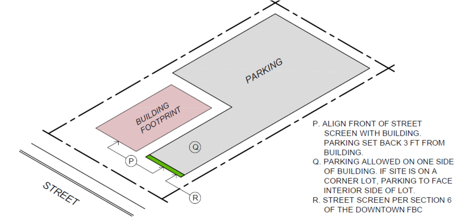 Street Frontage means a specific frontage designation for lots in the DT FBC Area that establishes certain character and development context to improve walkability within the DT FBC Area.