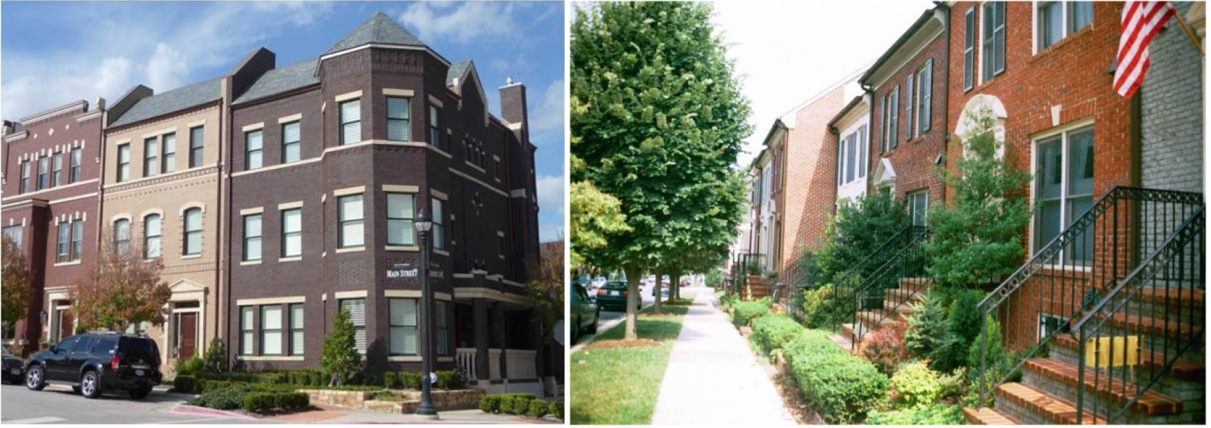 Townhome means a small- to medium-sized attached structure that consists of two (2) to eight (8) houses placed side-by-side. This type of residential building is typically located in a location that transitions from a primarily single family neighborhood into a commercial corridor. This building type enables appropriately-scaled, well-designed residential infill and is important for providing a broad choice of housing types and walkability.