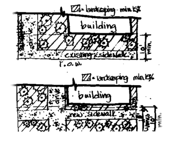 Front, side and rear yard setbacks.