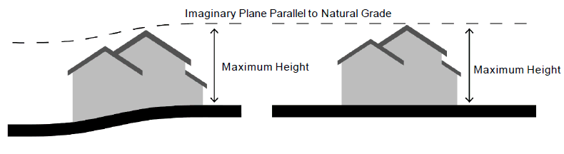 Height Measurement. The height of a structure shall be measured as the vertical distance from the finished grade at the perimeter of the structure to the highest point of the structure. Height is measured as the vertical distance from the finished grade of the site to an imaginary plane located above and parallel to the finished grade. See Figure 19.150.040-1: Building Height Measurement.