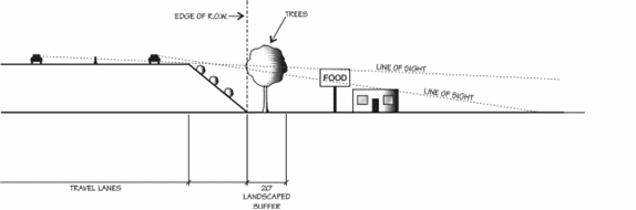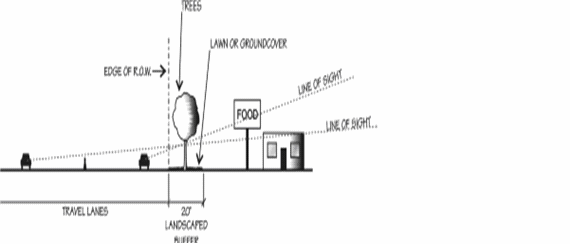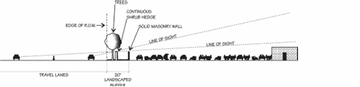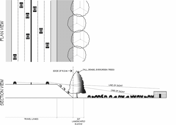 Parking shall be screened from adjacent public rights-of-way to the maximum extent possible. Such screening may include plantings, fences, or landscaped berms.