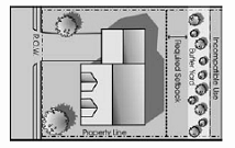 "Buffer yards" means an area adjacent to front, side and/or rear property lines, measured perpendicularly from adjacent property lines and/or right-of-way lines, intended to screen incompatible uses from each other. Buffers yards are also used to help maintain existing trees or natural vegetation; to block or reduce noise, glare or other emissions; and to maintain privacy. Buffer yards are in addition to (separate from) front, rear, or side yard setbacks.