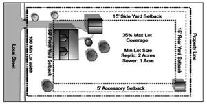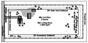 Minimum rear yard primary structure setback (measured from rear property line): 50 feet