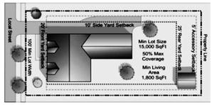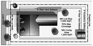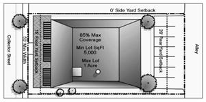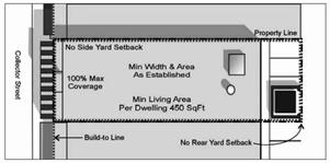 Side yard primary structure build-to line (measured from adjacent property line): 0 feet