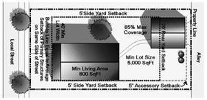Minimum rear yard primary structure setback (measured from rear property line): 0 feet