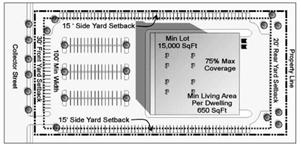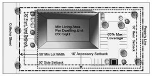 Minimum living area per dwelling (for primary structures): 650 square feet