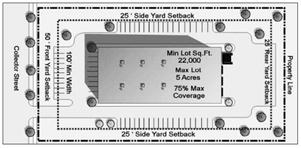 Minimum side yard primary structure setback (measured from adjacent property line): 25 feet
