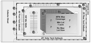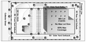 Minimum lot width (measured at front setback/build-to line): 80 feet
