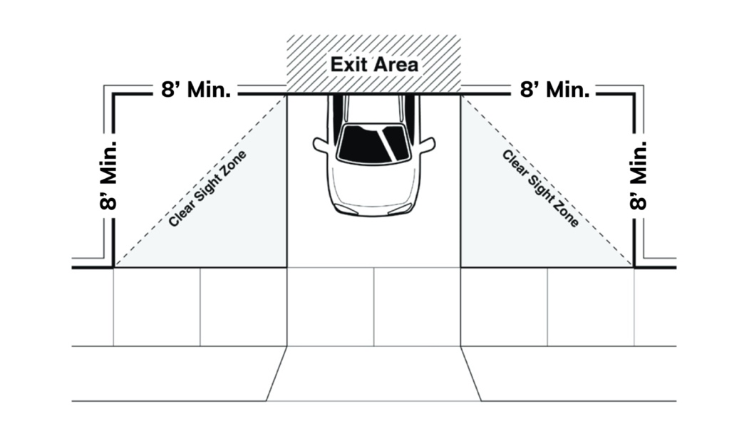 A vehicular clear sight zone must be included at vehicular exit areas as follows: