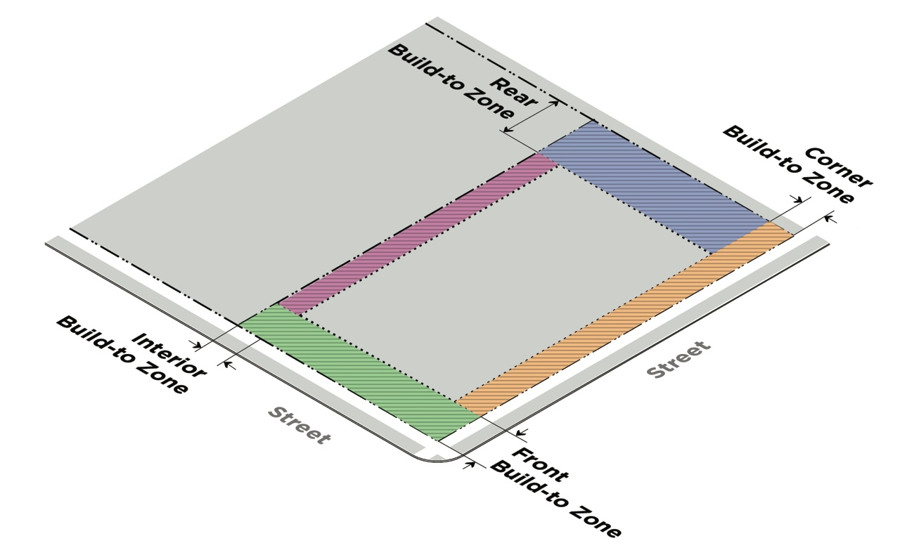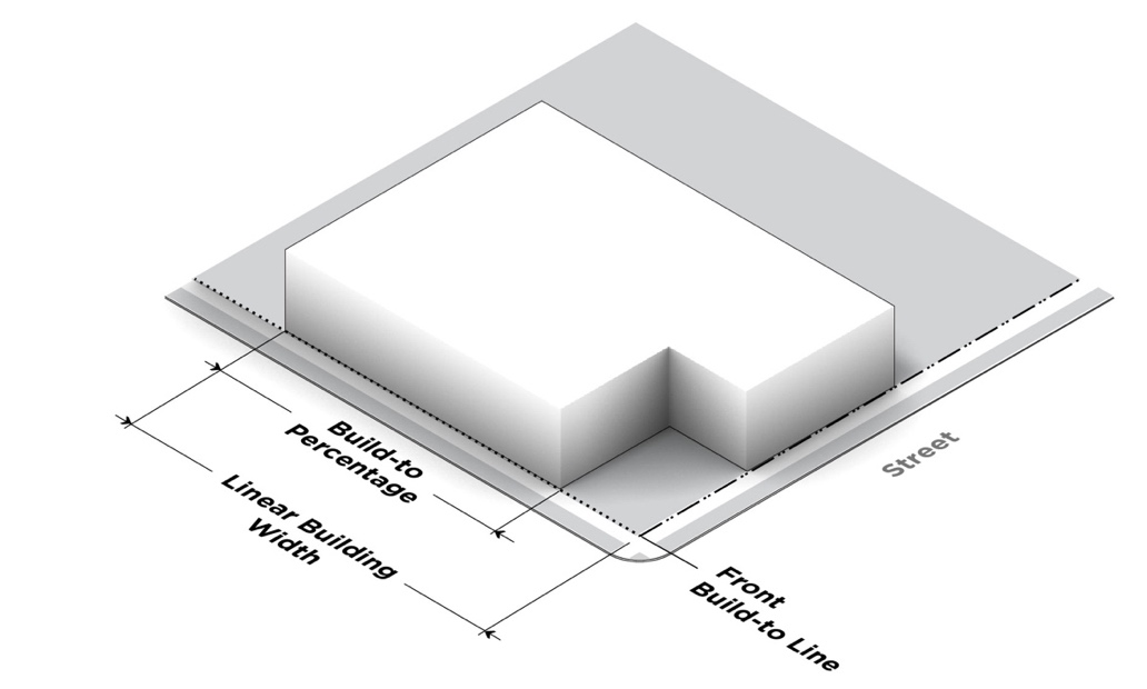 Setback. A required setback is the required minimum distance a principal building must be located from a lot line, which is unoccupied and unobstructed by any projections of a principal building, unless permitted by this Ordinance. A build-to zone or build-to line is considered a required setback.