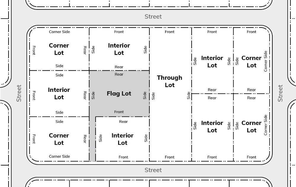 For through lots, both the front and the rear required setbacks must meet the required front setback of the zoning district.
