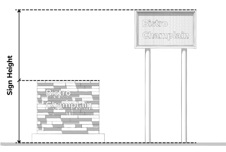 Sign height. For ground signs, sign height is measured as the vertical distance measured from the normal grade at the base of the sign to the highest point of the sign, including any decorative elements. Normal grade shall be construed to be the existing grade prior to construction or the newly established grade after construction, exclusive of any fill, berm, mound, or excavation solely for the purpose of locating the sign, whichever is lower.