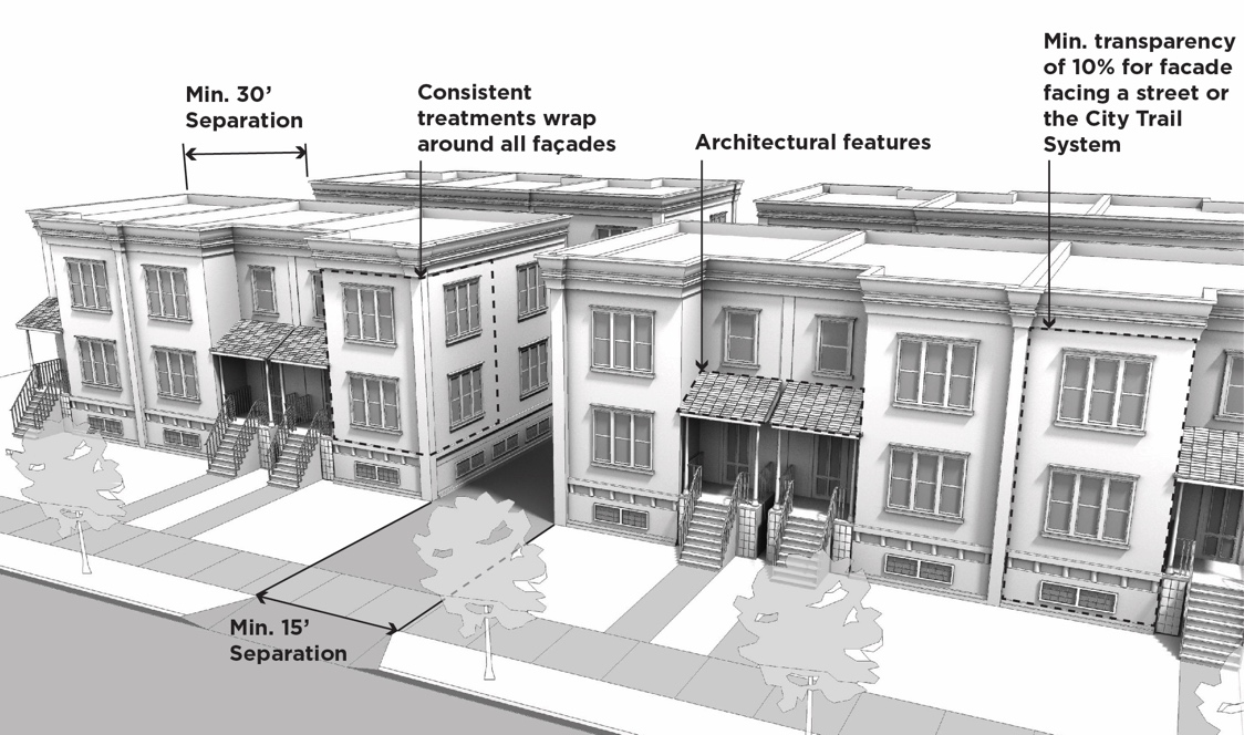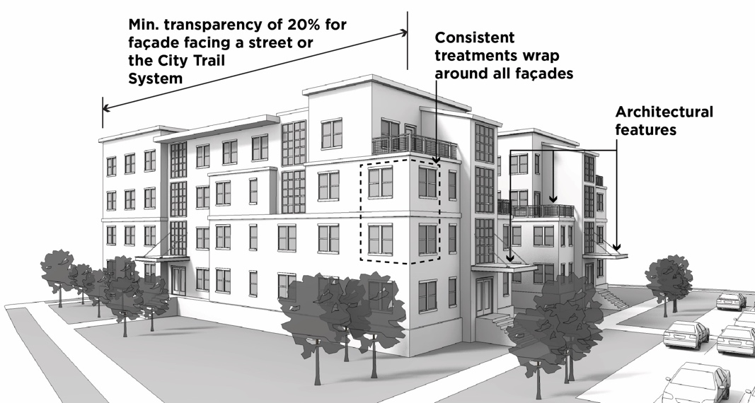 Development proposals must include architectural features, landscaping, or other design elements which benefit and preserve the character of the community.