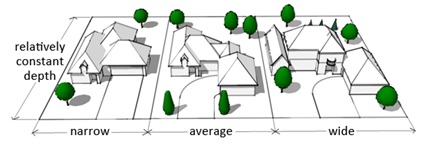 Lot averaging is a design technique that replaces minimum lot dimensions with an average lot width and size. On an optional basis, the lot area and width dimensions in Table 11-602.02.01., Single-Family Detached Lot and Building Standards and Table 11-602.02.02., Single-Family Attached and Multiple Family Lot and Building Standards are averages for each neighborhood and housing type. Lot averaging may only be applied where both of the following conditions apply: