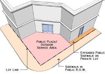 All sidewalk merchandise displays are within 40 feet of an entrance to the principal use, or located in an area defined by the forward projection of the side walls of the use, whichever is a smaller display area.