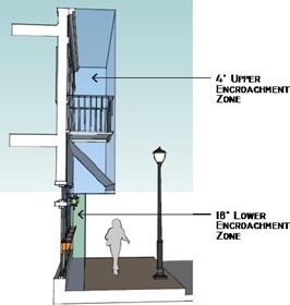 A planting strip, maintained by the property owner, is located between the sidewalk and the building or structure for which an encroachment is required;