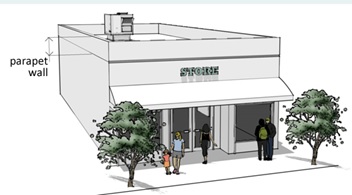Storefront. The facade of a building, regardless of the use type of the space, having an entrance from the exterior of the building through the facade. Only facades that face upon a road or parking area between the building and the road shall be considered storefronts.