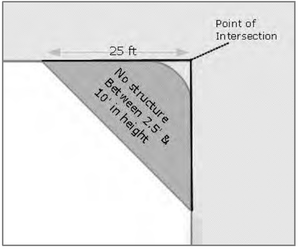Trees should not obstruct the vision of drivers at intersections (the setback depends on the size, shape, and growth pattern of the tree.).
