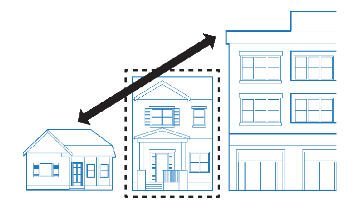 [Building heights should help to transition (step down) between the Mixed Use zones and the adjacent residential neighborhoods.]