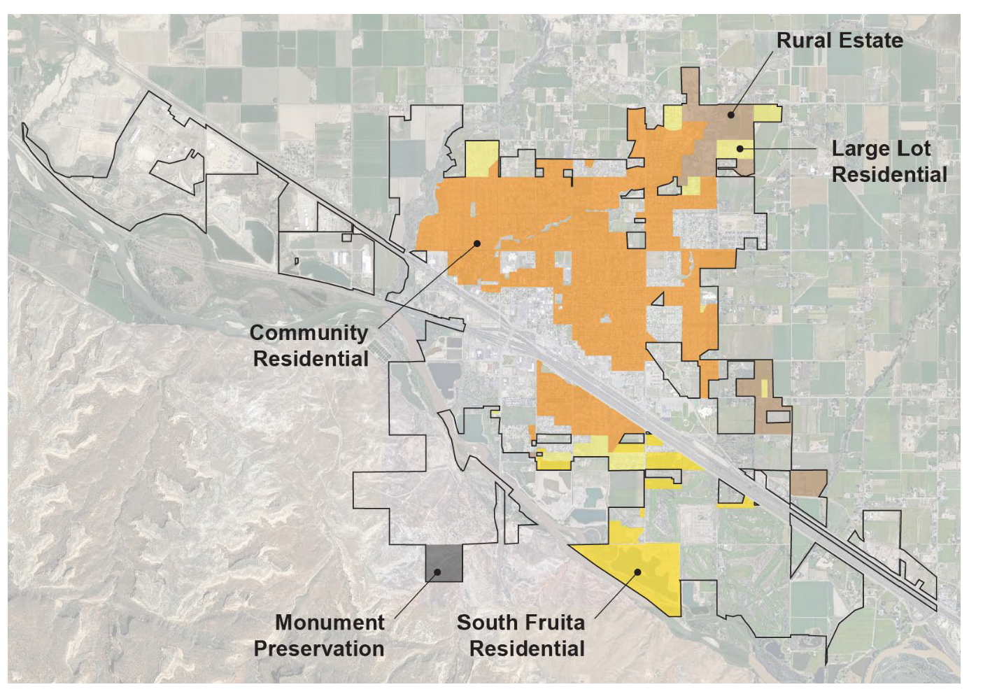 The 2020 Community Plan strives to promote high quality growth that preserves Fruita's character and increases economic sustainability. The Plan goes on to call for the creation of vibrant neighborhoods with a diversity of housing options that allow Fruita residents to live, work, and play in their community. As such, the design standards in this chapter are proposed to meet these goal statements combining the needs for strong livable neighborhoods and long-term economic development. These standards are intended to set the course to meet the desired character of the community.
