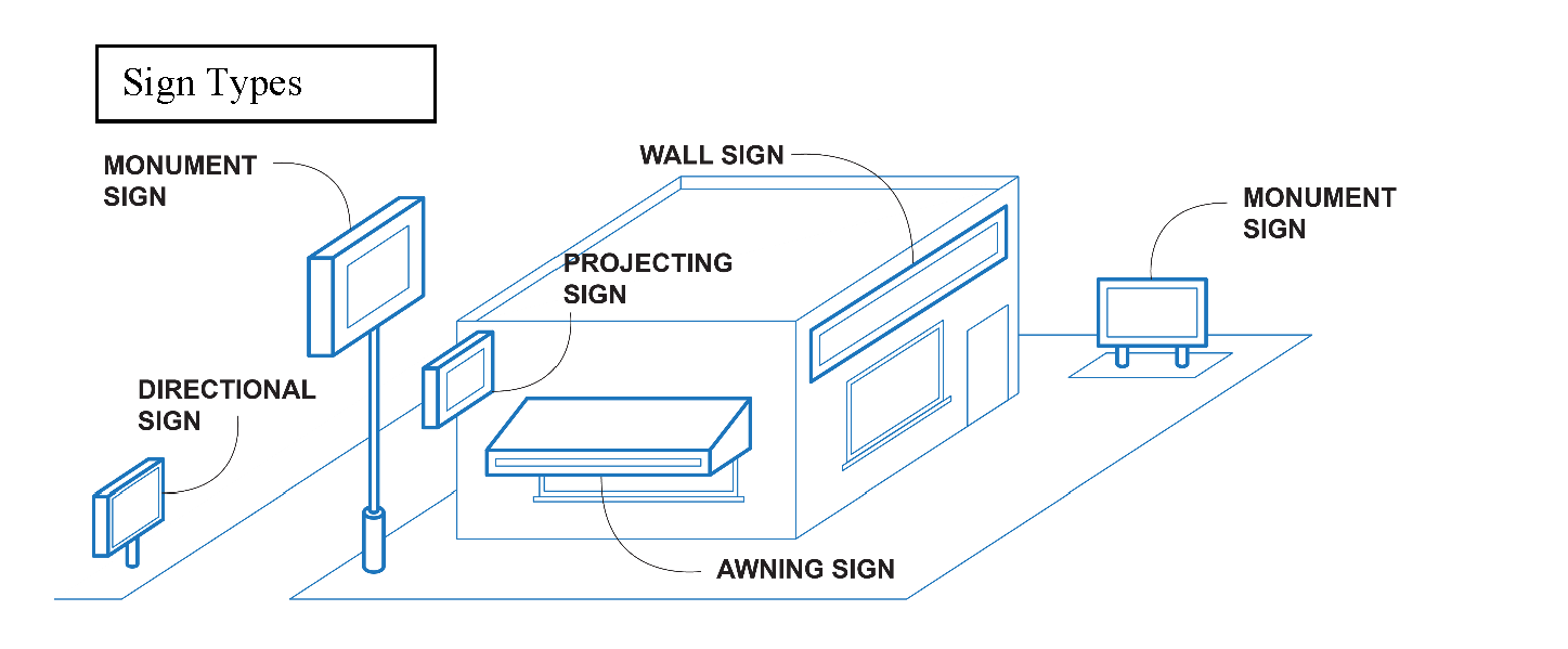 Freestanding sign limited to eight (8) feet in height with the setback from property lines equal to the height of the sign.